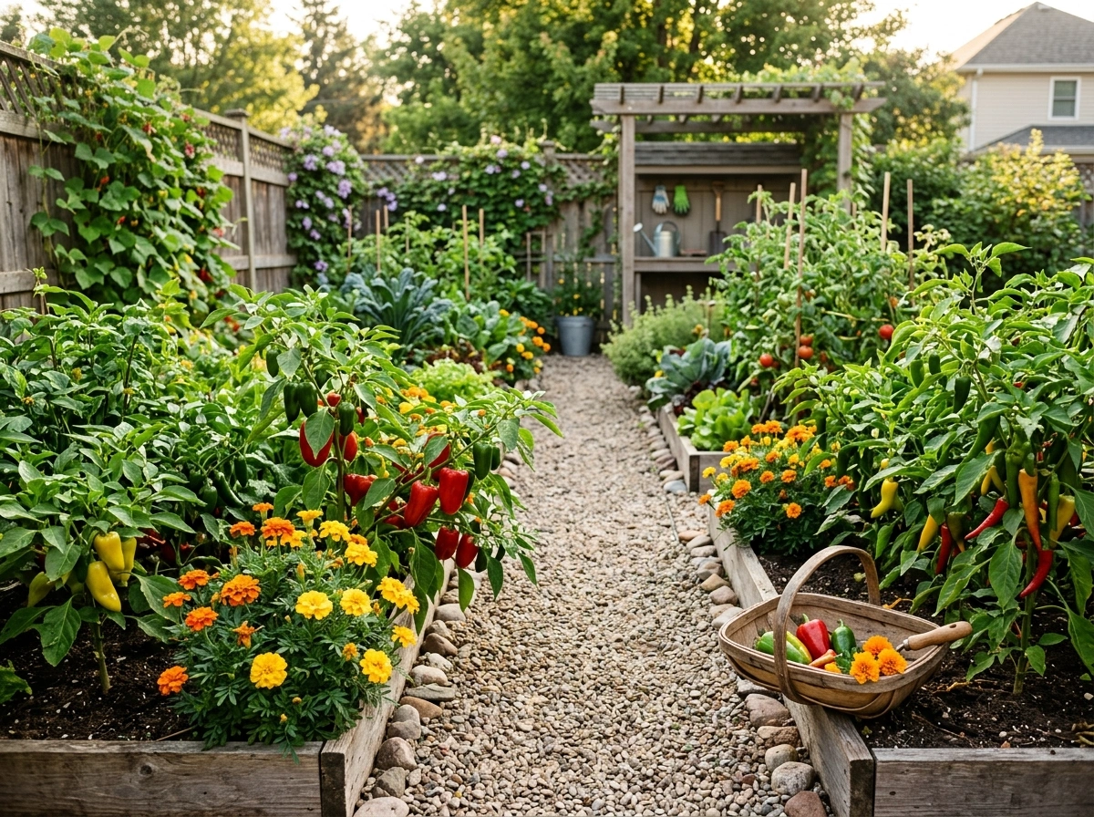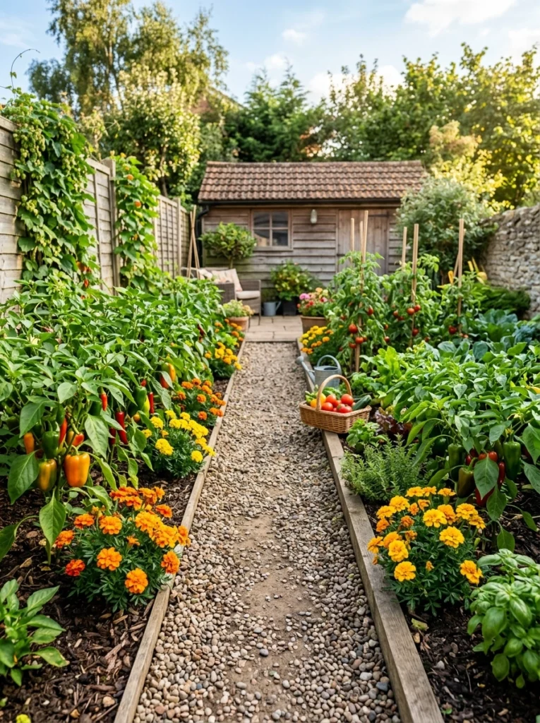 Central path productive gardens feature easy harvest paths down the middle, ensuring you never trample roots. Perfect for zucchini and peppers mixed with pest control flowers. Never block movement paths with untamed vines!