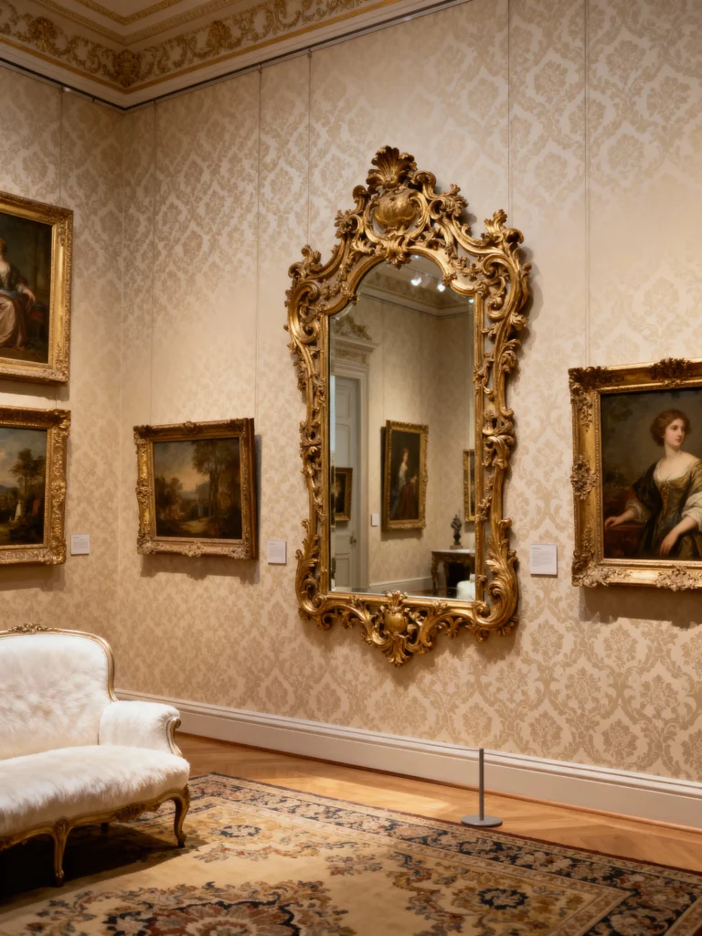 Adorn the walls with handcrafted mirrors in ornate frames to reflect light and add visual interest. Mirrors can make a room feel larger and brighter. Consider a large, intricately carved mirror as a statement piece.