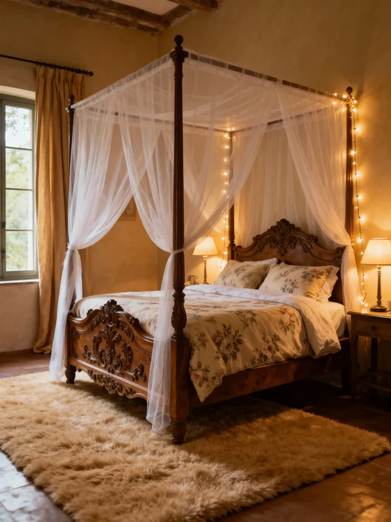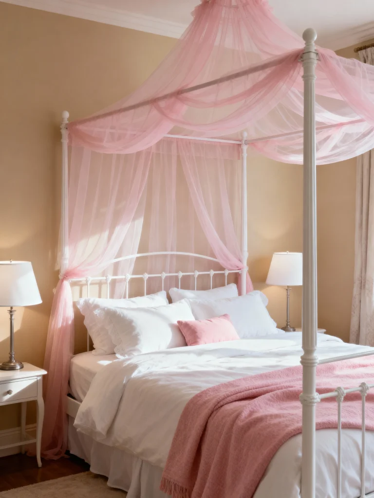 Create a romantic ambiance with a sheer canopy bed draped in luxurious fabrics. The canopy adds a sense of grandeur and intimacy. Choose a lightweight fabric like voile or silk for a dreamy, ethereal feel.