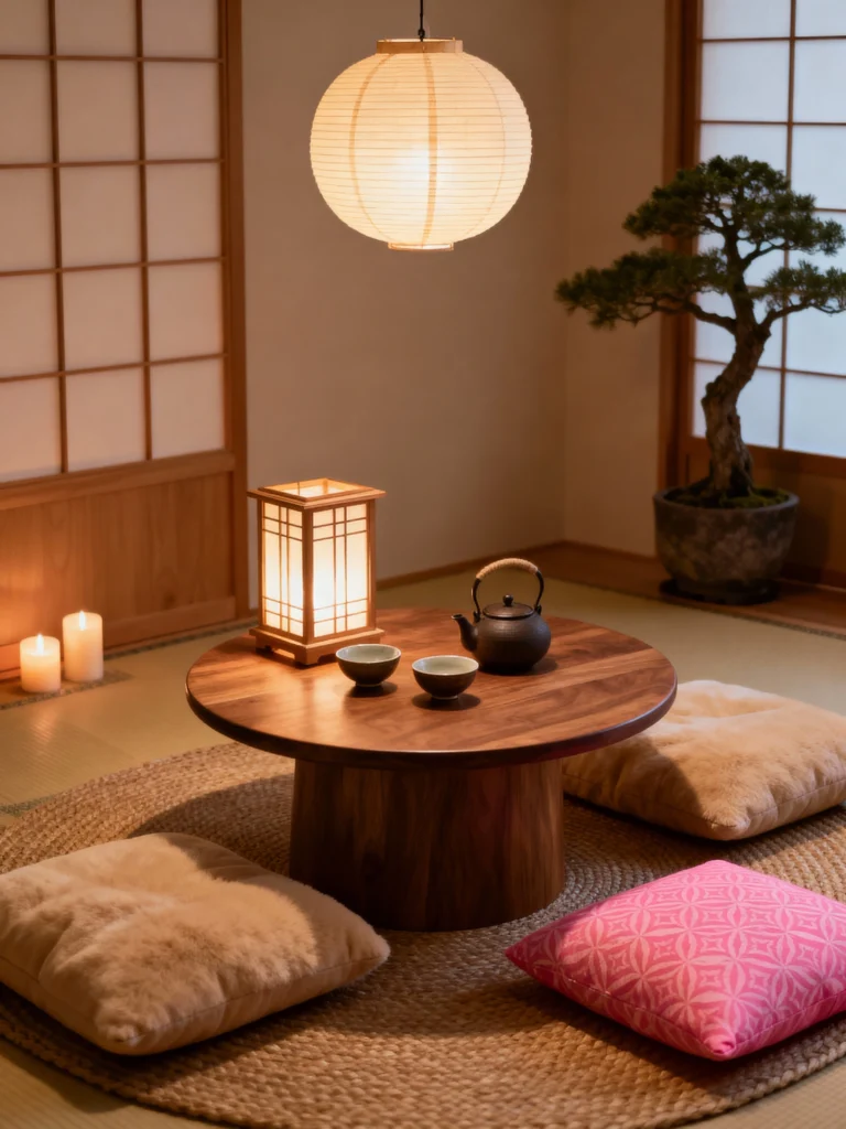 Arrange a low seating area with floor cushions and a small table for a relaxed atmosphere. This is perfect for enjoying tea or reading. Add a few lanterns and candles to create a cozy, inviting space.