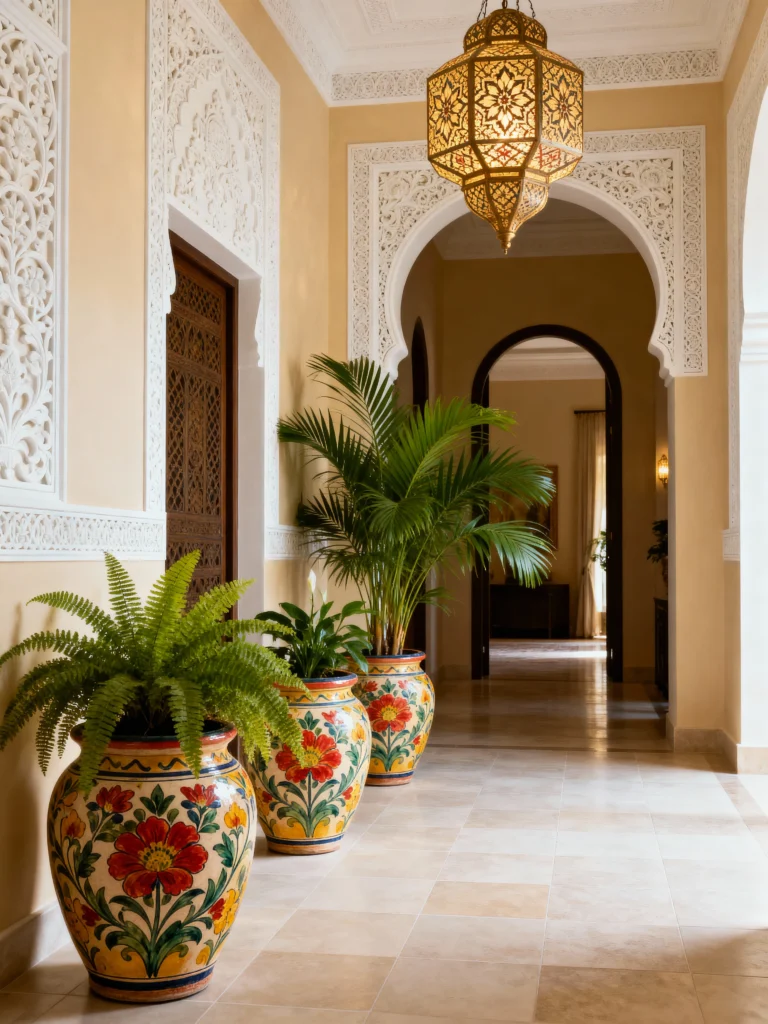 Bring a touch of nature indoors with lush potted plants in decorative Moroccan planters. Plants add life and vibrancy to the room. Consider low-maintenance options like succulents or ferns.