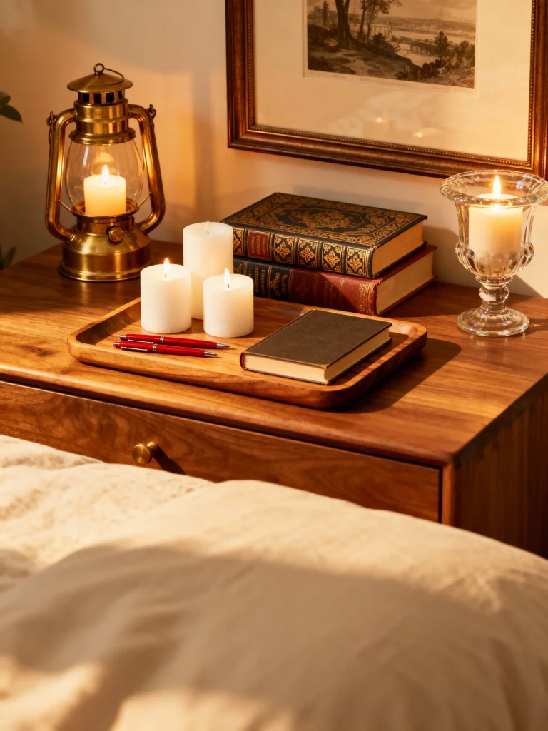 Use decorative trays to display candles, books, and other small items on nightstands or dressers. These add a touch of elegance and organization. Choose trays made of metal, wood, or ceramic, depending on your style.