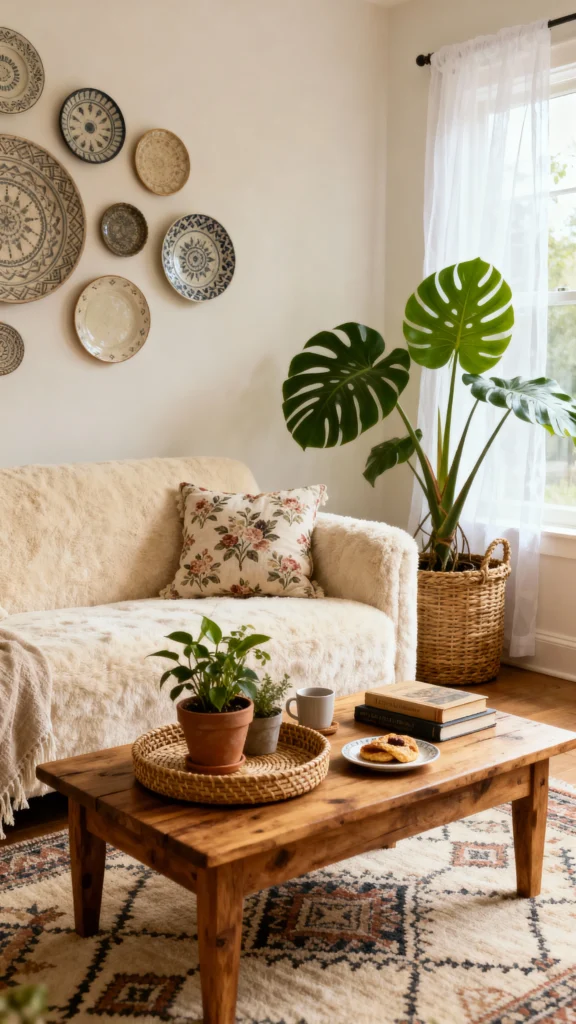 Curated collections bring a personal touch to your living room while staying true to Colonial Modern and English-inspired styles. Incorporating pieces like handcrafted ceramics and vintage wall plates creates a warm and inviting atmosphere. Mix and match different textures and colors to showcase your unique story and style.