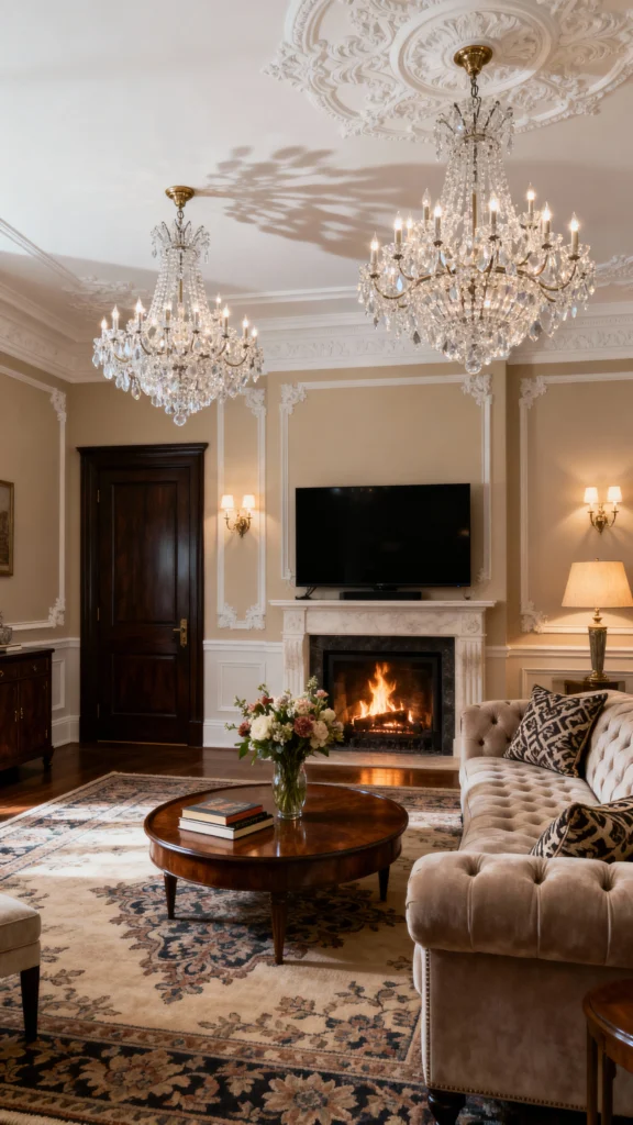 Layered lighting is key to creating a cozy vibe in your living room. Think about combining chandeliers with soft table lamps and wall sconces for a warm glow. This approach not only highlights your decor but also allows you to adjust the mood with ease.