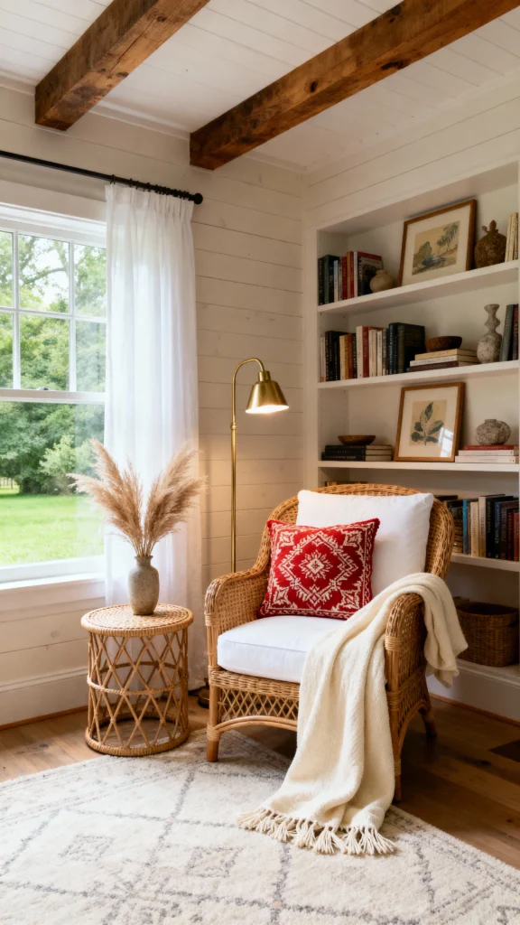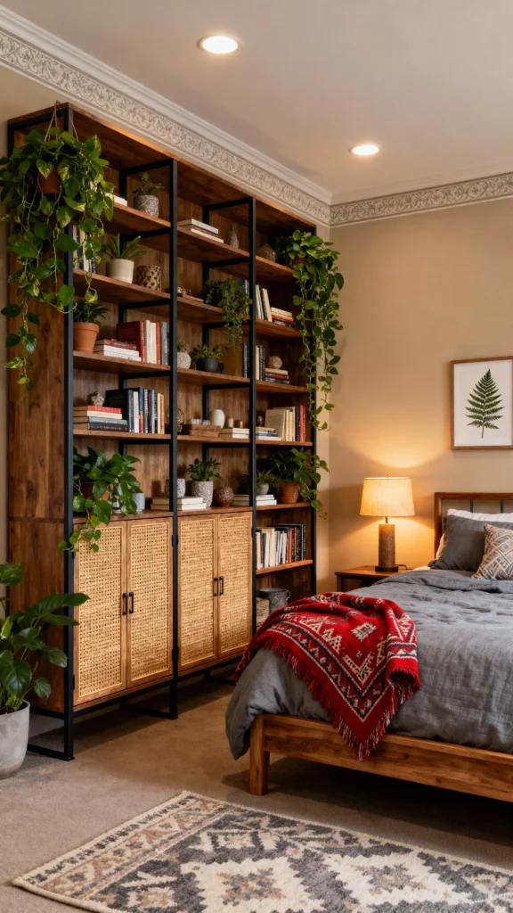 A cozy reading nook is an essential part of any bohemian bedroom. Soft textures and natural elements invite you to kick back and enjoy a good book. Floating shelves can hold your favorite reads while adding a touch of style to your space.