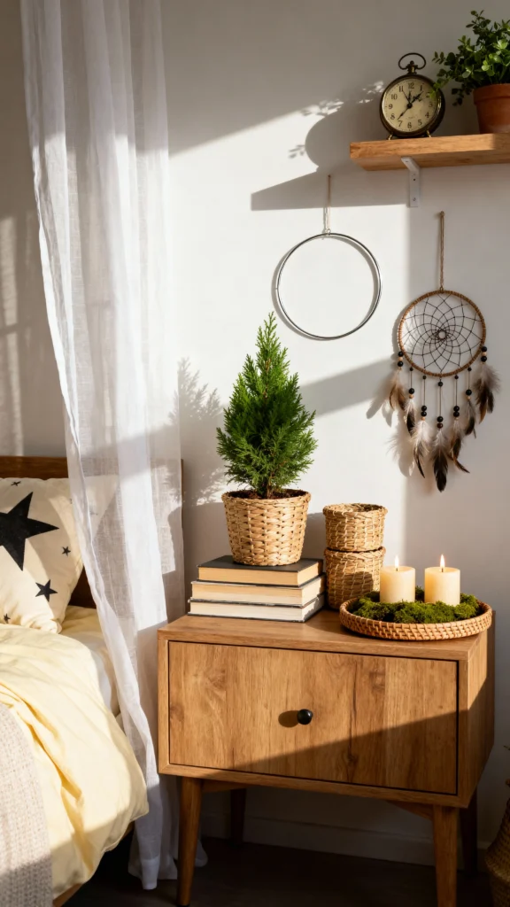 Dreamcatchers are a classic bohemian touch that adds charm to any bedroom. Hanging them on floating shelves allows for a playful display, mixing textures and colors effortlessly. They not only look lovely but also bring a sense of tranquility to your cozy corner.