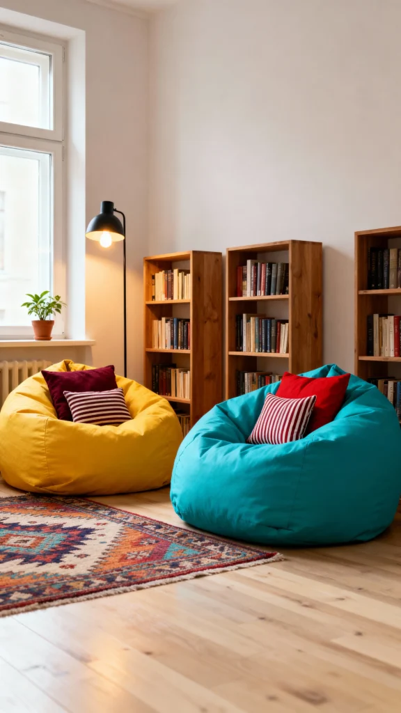 Create a relaxing nook in your room with floor cushions that invite you to unwind. Mix and match colors and textures for a laid-back vibe that feels just right. Add a few books on floating shelves nearby to complete your cozy corner and enjoy your chill-out time.
