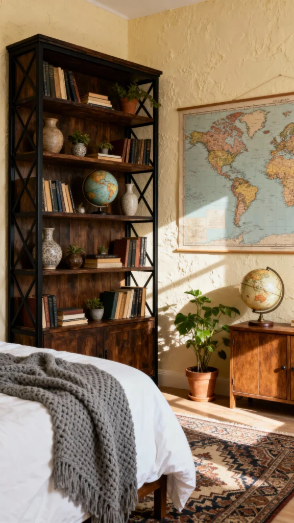 Eclectic shelf styling is all about mixing and matching your favorite items. Try combining globes, vases, and decorative plates for a warm, inviting look. Don’t be afraid to play with colors and textures to create a cozy corner that feels uniquely yours.