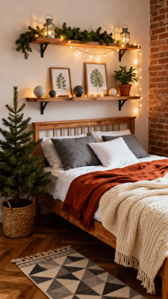 Floating shelves are a fun way to showcase seasonal decor in your bedroom. You can mix in little pumpkins in the fall or some bright flowers in the spring to keep things fresh and lively. It’s all about creating a cozy vibe that reflects the changing seasons.
