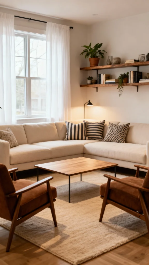 Creating a comfy seating area is key to a modern boho retreat. Think plush sofas paired with oversized cushions for a laid-back vibe. Adding a low coffee table can make gatherings feel cozy and inviting.