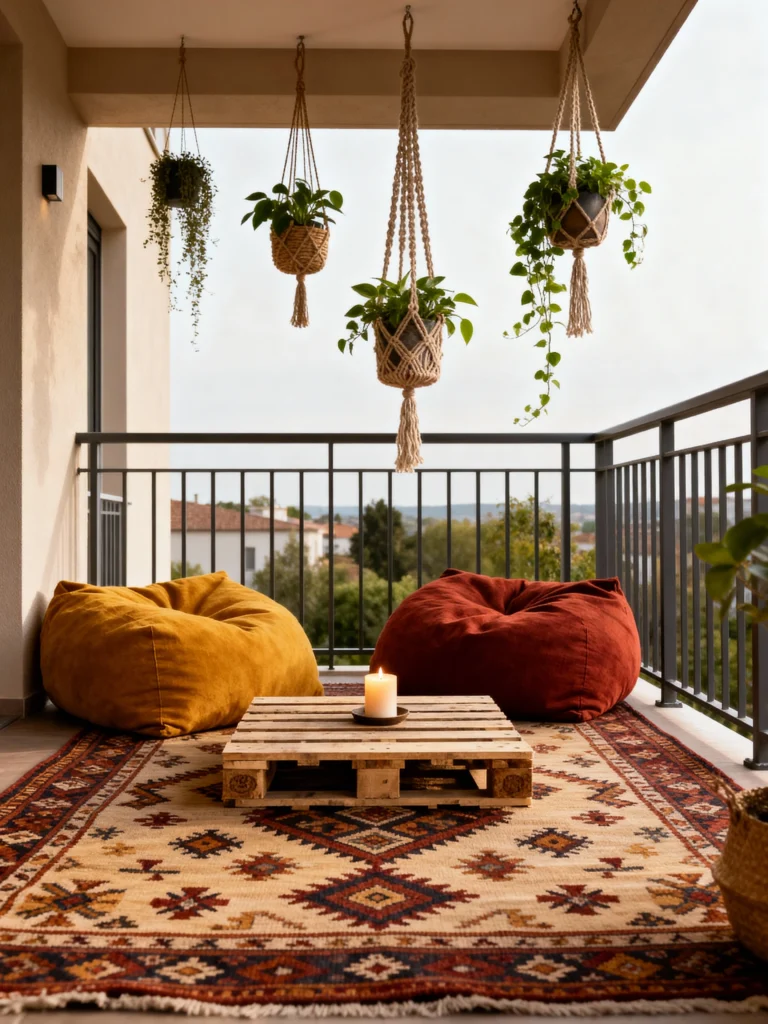 Start with an outdoor rug to cover up cold concrete or wooden decking. Layer it with large, weather-resistant floor pillows or a pouf. Add a low coffee table (a wooden crate works perfectly), and you have a laid-back lounge area.