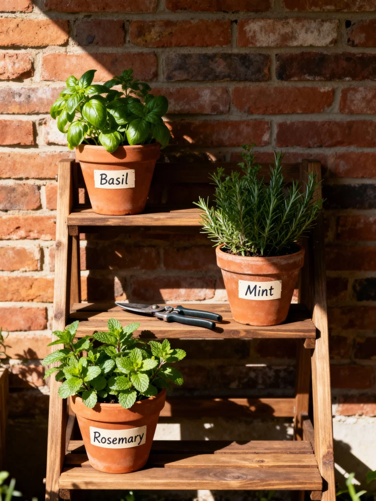 dedicating a sunny corner to a tiered plant stand filled with culinary herbs. Not only do they smell amazing (hello, fresh basil!), but they also save you money at the grocery store.