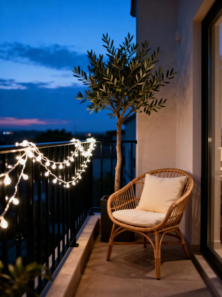 Lighting isn’t just for indoors. In fact, lighting is the single most important element for creating a “cozy” vibe. When the sun goes down, your balcony should glow.