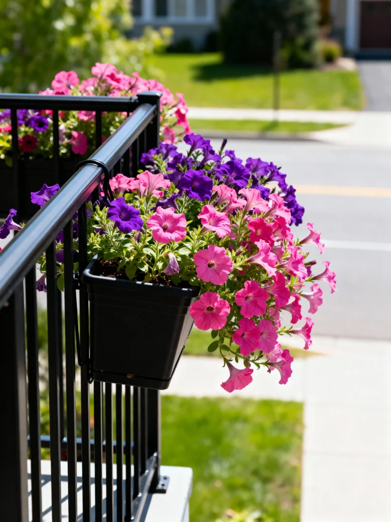 Don’t ignore the edge of your balcony! Railing planters are essential for tiny spaces because they hang off the balcony, using zero floor space.