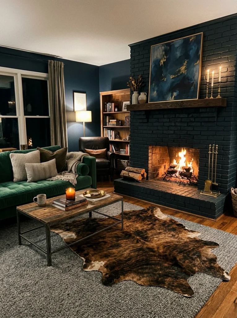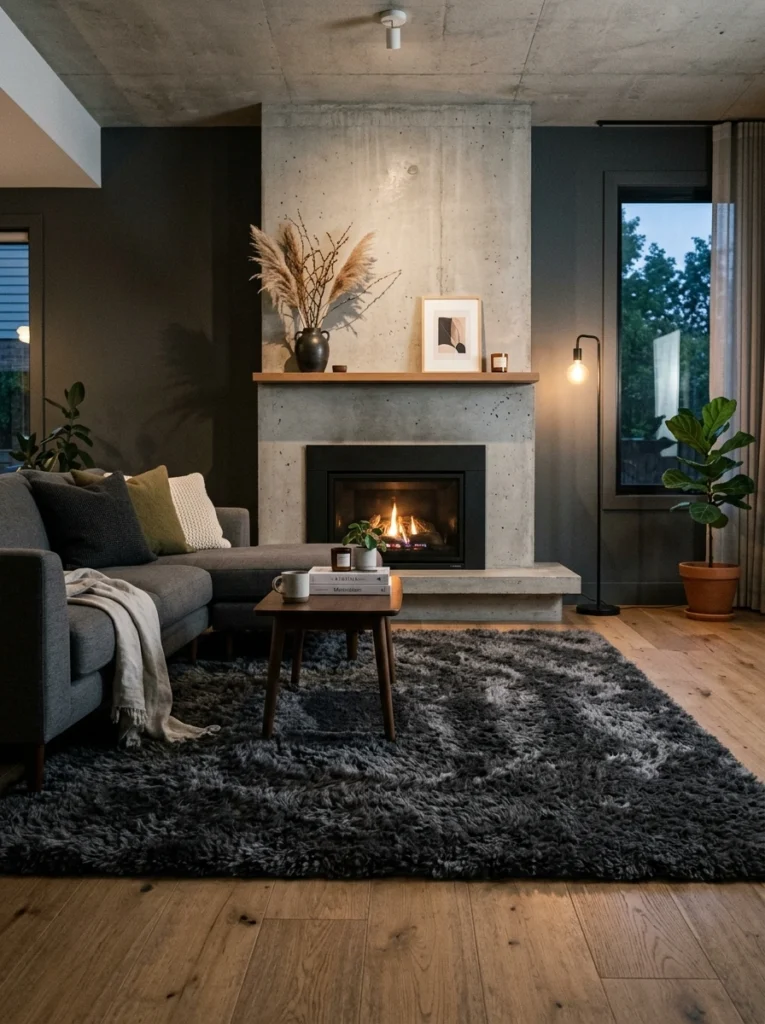 Why it Works: It adds a massive dose of coziness and sound absorption, making the living room feel quieter and more intimate. Against the hard materials of a fireplace (brick, stone, tile), the soft, deep texture creates a beautiful contrast.
