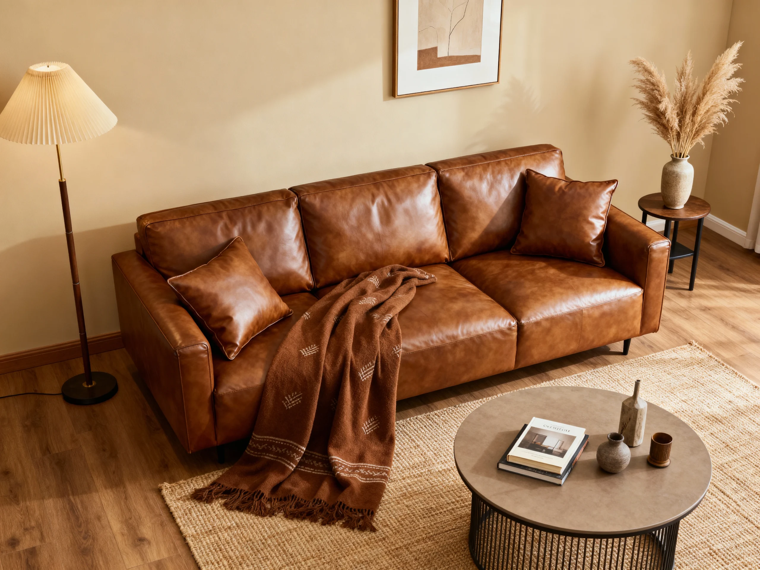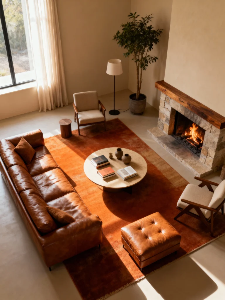 Natural light can transform your living room into a warm and inviting space. It highlights the earthy shades of brown and green, enhancing the cozy vibe you want. With large windows letting in sunlight, your room feels more open and inviting, making it a perfect spot to relax.