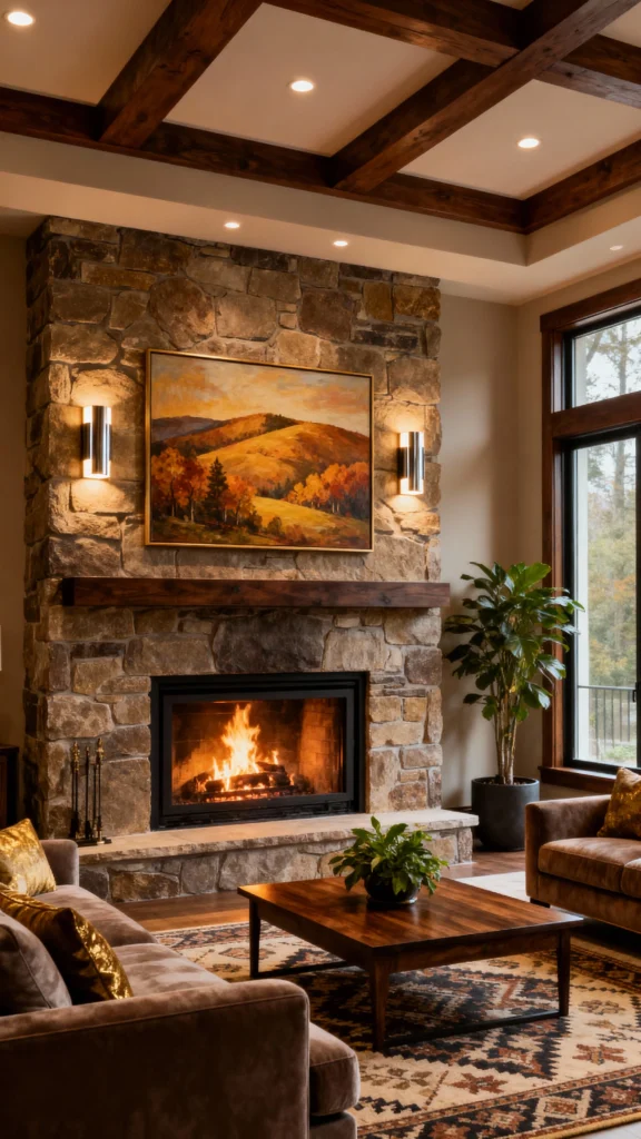 Art can truly transform your living room into a cozy retreat. A large piece in earthy tones, like the one above, creates a warm focal point that draws the eye and invites relaxation. Pair it with simple furniture and natural textures for a unified, calming space.