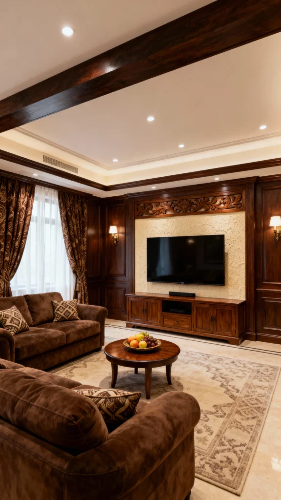 Wooden elements bring warmth and a natural feel to your living room. Consider using wooden furniture like coffee tables and chairs to create a cozy vibe. Additionally, accents like wooden shelves or decorative pieces can tie the whole look together beautifully.