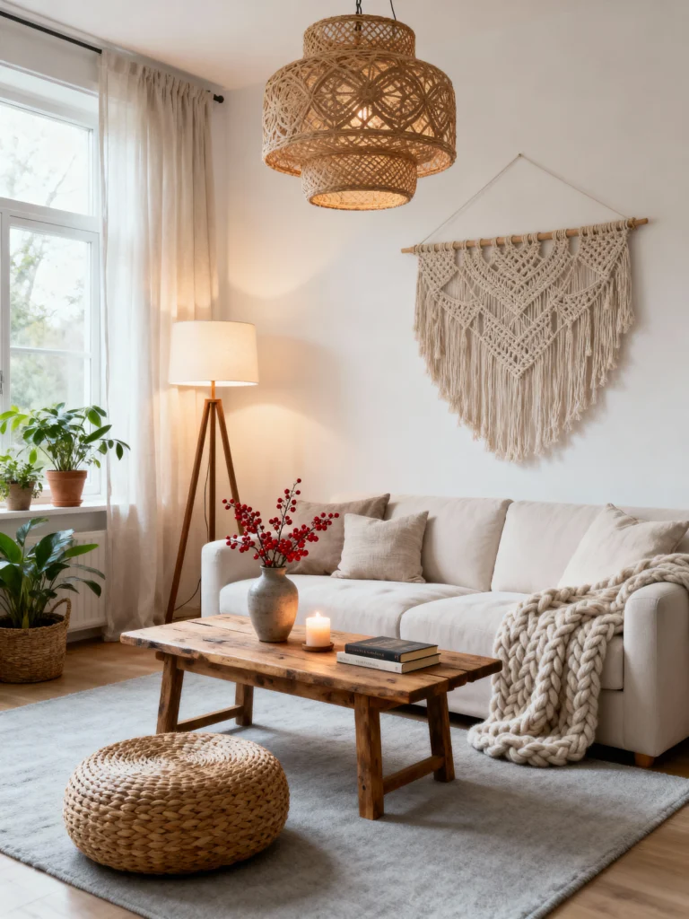 Using natural materials in your living room can create a warm and inviting atmosphere. Think about adding wooden furniture, wicker accents, and stone decor to enhance the earthy vibe. These elements not only look beautiful but also make your space feel cozy and connected to nature.