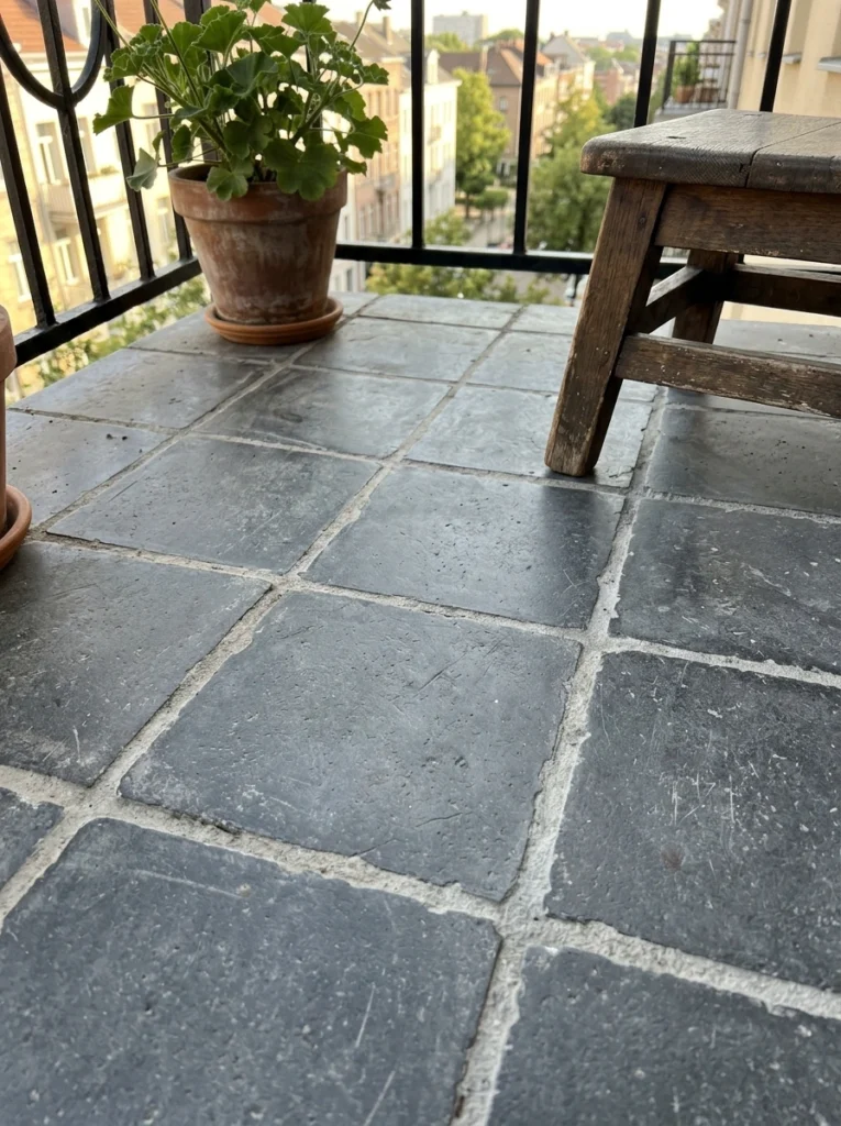 Got a slightly larger balcony to work with? Try creating a framed border. Use a solid, neutral tile around the perimeter of the space, and fill the center with a contrasting patterned tile. It acts almost like a built-in outdoor rug. Mixing textures like this defines your seating area beautifully without needing an actual fabric rug that gets soggy in the rain.