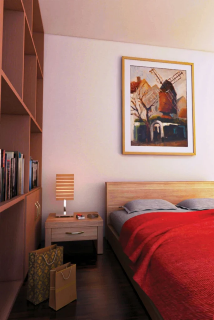- Simple Bed Frame: Opt for a low-profile, minimalist bed frame to keep the focus on the brightness of the room and the art.
