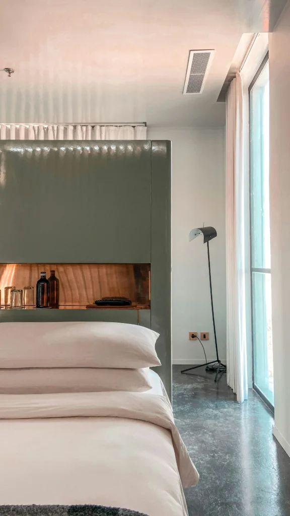 - Headboard Innovation: Use an oversized or structural element as a headboard to add architecture to a simple room.
