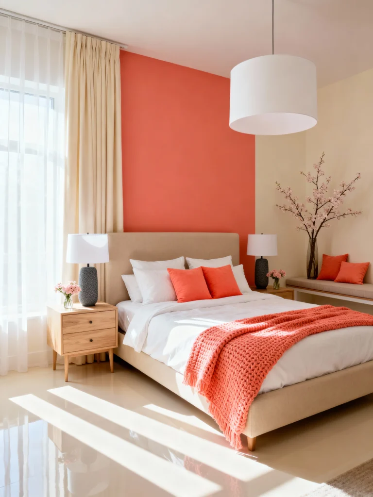 • Hot Accent: Paint one wall a vibrant, warm color like coral or terracotta. It instantly adds depth without overwhelming the whole room.
