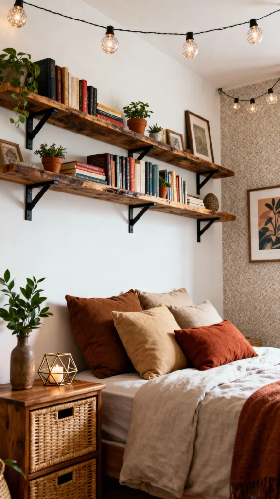 Using wall-mounted shelves is a smart way to free up floor space in a small bedroom. You can display books, plants, or personal items without taking up valuable ground area. This simple trick not only helps with organization but also adds a touch of your personality to the room.