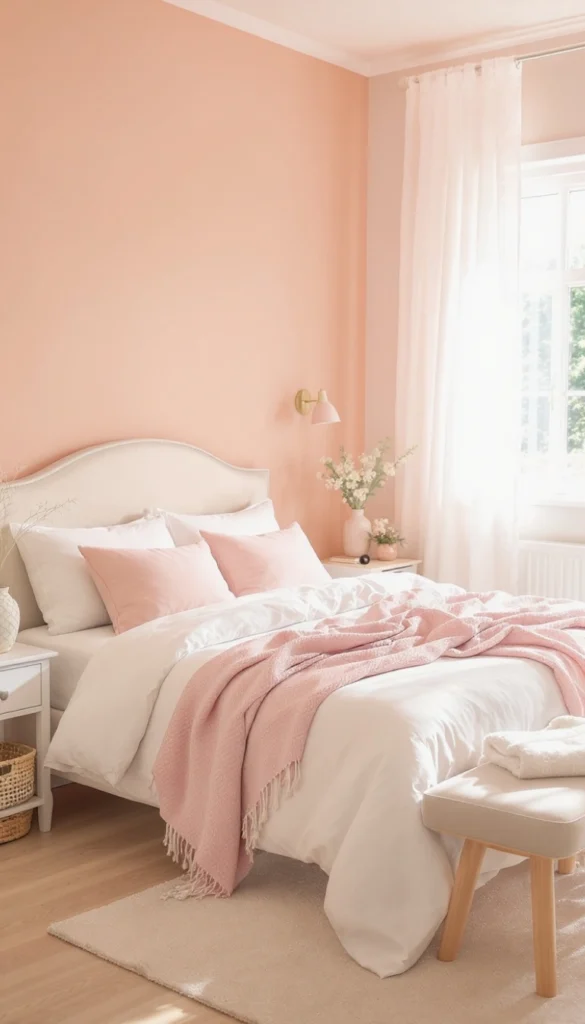 - Light paint choice: Opt for a soft coral or blush pink on the walls.