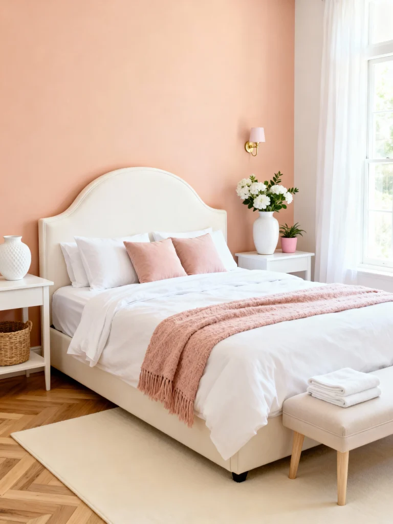 - Light paint choice: Opt for a soft coral or blush pink on the walls.