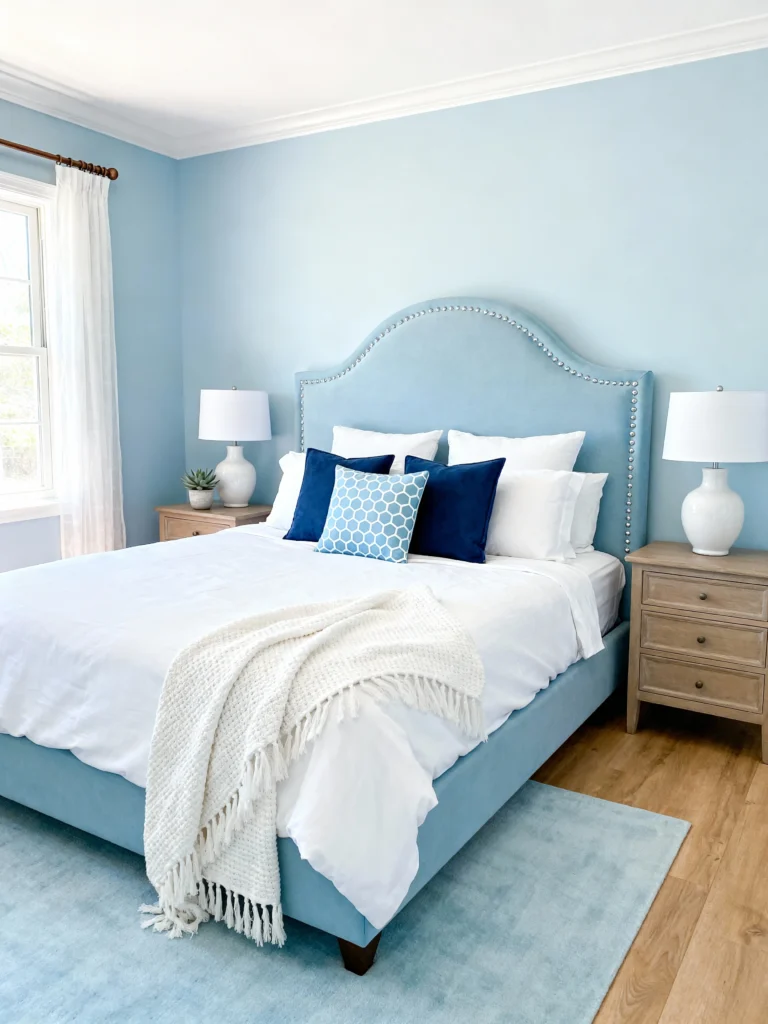 - Blue accents: Keep accent pillows in the same color family (blues) for a subtle, layered effect.