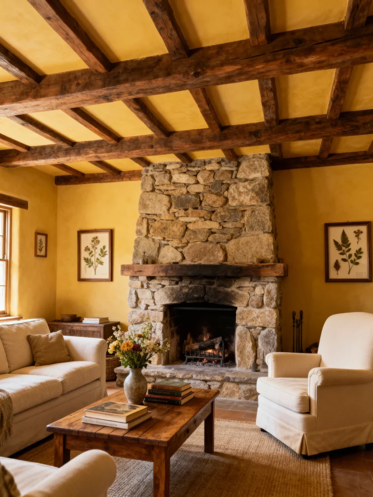 • Stone Accents: A stone fireplace or decorative objects like bookends.
