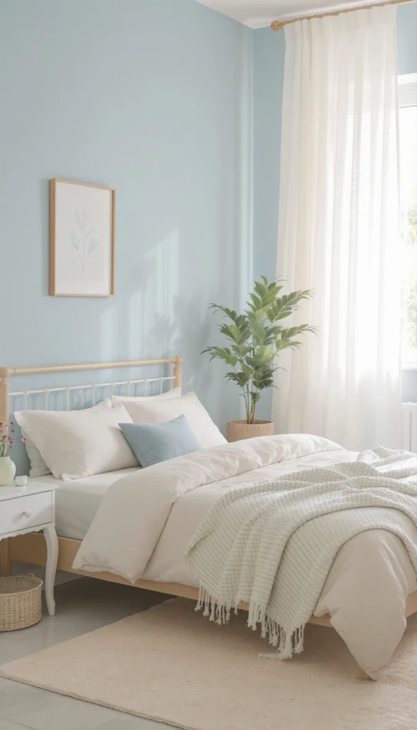 - Choose a cool pastel: A light sky-blue or dusty-blue paint color keeps the vibe tranquil.