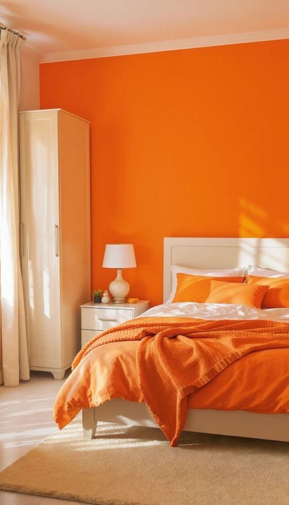 - Match the accents: Use an orange throw blanket and pillows to create a cohesive monochromatic look.