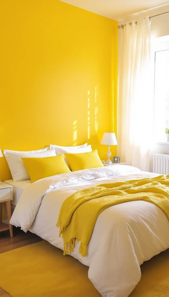 This room is pure joy! The bright yellow accent wall instantly wakes up the entire space. It’s paired perfectly with crisp white bedding and sheer curtains, which maximize the natural light. The yellow rug and throw blanket tie everything together, creating a look that’s both invigorating and simple.