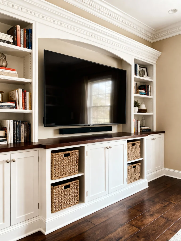 - Entertainment Center: A media console or built-in shelving unit can house your TV, books, and games. Incorporating media storage in a way that is stylish and organized ensures the living room remains functional without feeling cluttered.