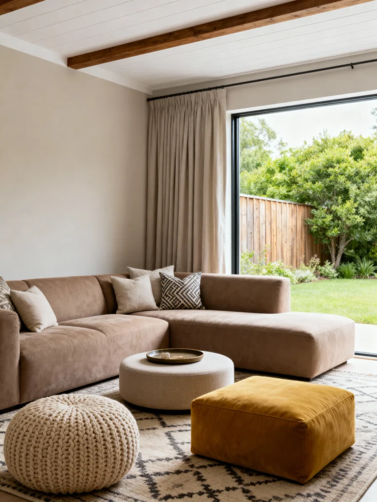 - Ottomans and Poufs: Ottomans or poufs are perfect for additional comfort. They can be used as footrests, extra seating, or even a place to stack books and board games.