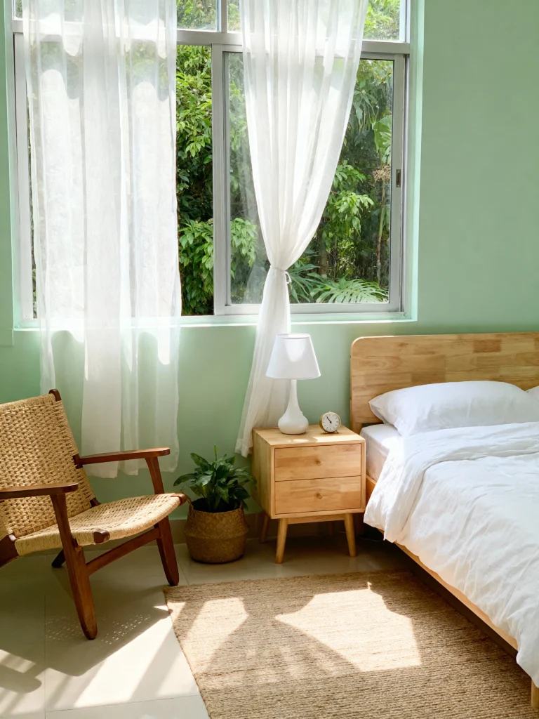 - Match your stuff: Bedding, curtains, and art should vibe with your green.