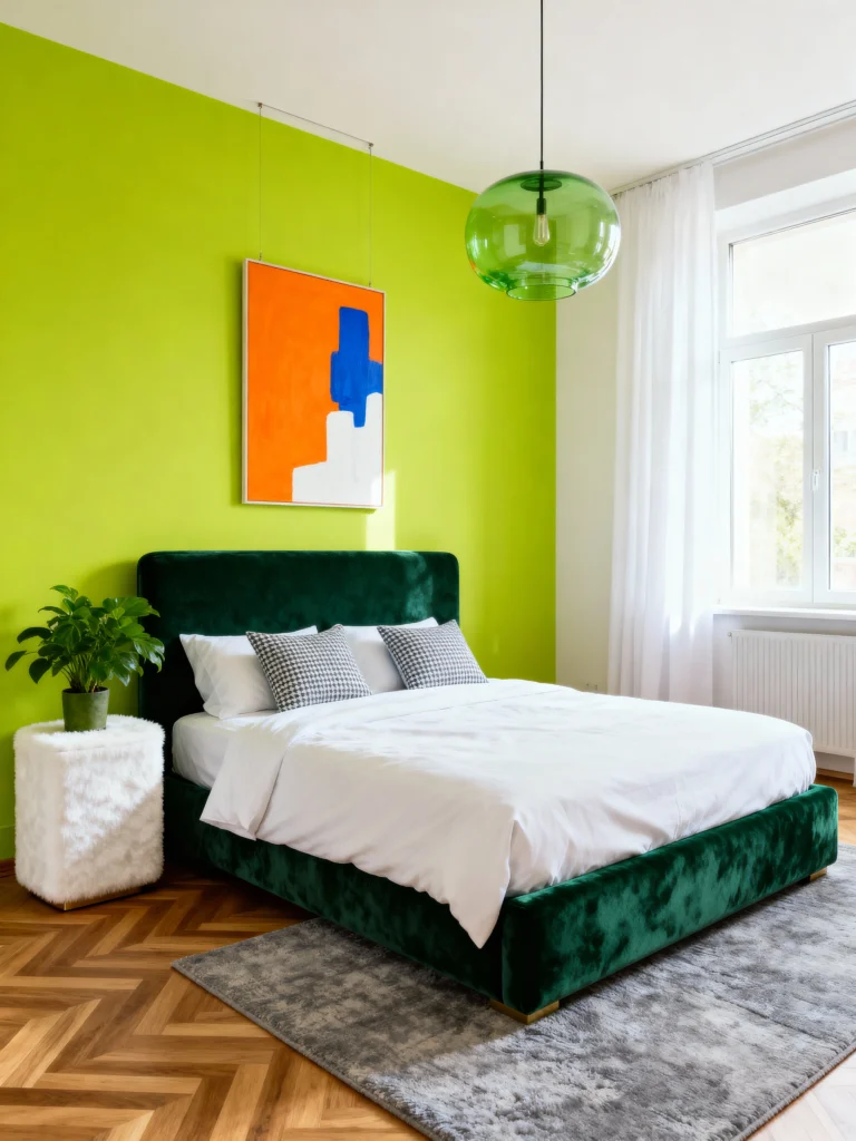 Fun, youthful, and full of life, Kiwi Burst is a playful pick. It’s awesome for teens’ rooms or quirky spaces. Pair it with colorful accessories and wild patterns—purples or reds, anyone? This one’s a mood-lifter for sure.