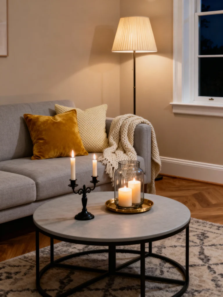 Mood lighting can really transform your cozy living space. Try using string lights around your furniture or some stylish lamps to create a warm vibe. Don’t forget to add candles for that soft flicker that makes everything feel extra inviting!