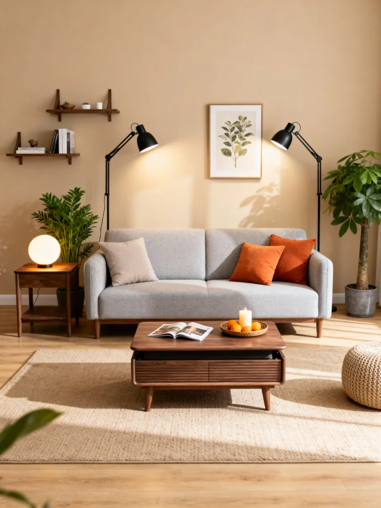 When space is limited, multipurpose decor becomes a game-changer. Pieces like a coffee table with built-in storage or an ottoman that doubles as extra seating maximize function without sacrificing style. These smart solutions help keep your living room organized and clutter-free, which is key for creating a cozy, inviting atmosphere in a small space. By choosing furniture that works double duty, you make the most of every inch while maintaining warmth and comfort. It’s a practical way to turn even the tiniest living room into a stylish, snug retreat.