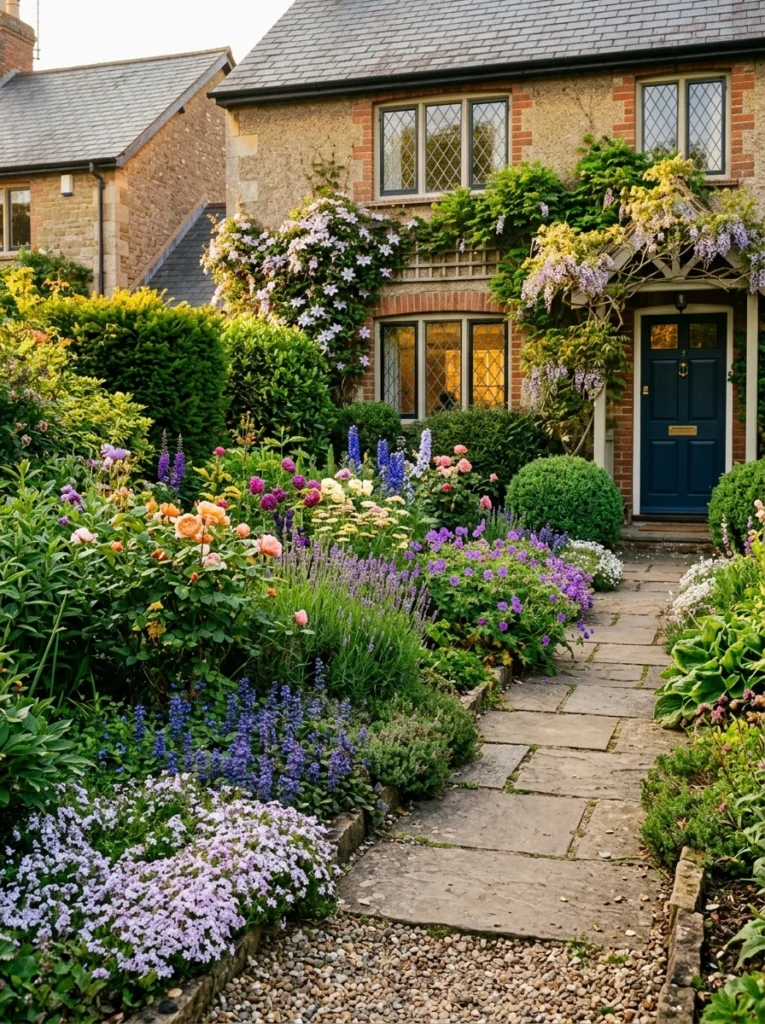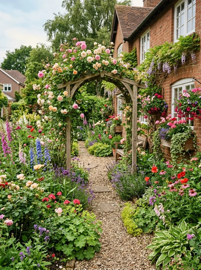 - Practical Explanation: A romantic, chaotic-but-controlled explosion of blooms. Mix pollinator flowers, spilling window boxes, and classic climbing roses over a structure.