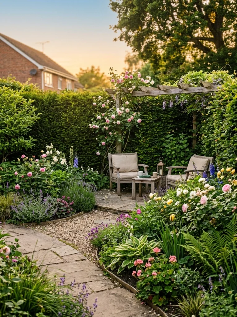 - Practical Explanation: Transforming an ignored property corner into a destination. Soften harsh fence angles with curved beds, tall privacy hedges, and tucked-away seating areas.