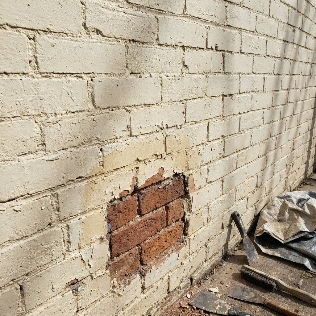 Never skip the patch test! Trying to remove paint from outdoor brick is unpredictable because every house has a different history. Old historic brick is much softer and far more porous than modern exterior brick.