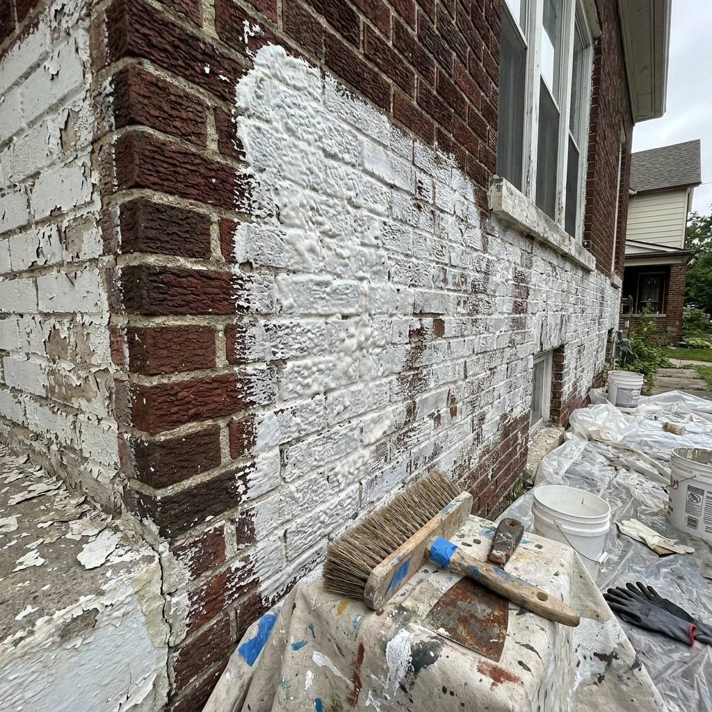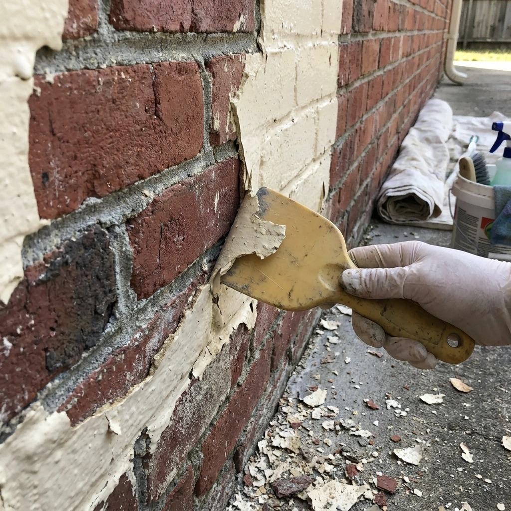 For safe masonry paint removal outside, avoid generic wood strippers. Buy a dedicated masonry-safe paint stripper and slather on a thick layer using an inexpensive brush or a roller. Work in small, manageable sections rather than trying to coat the whole house at once.