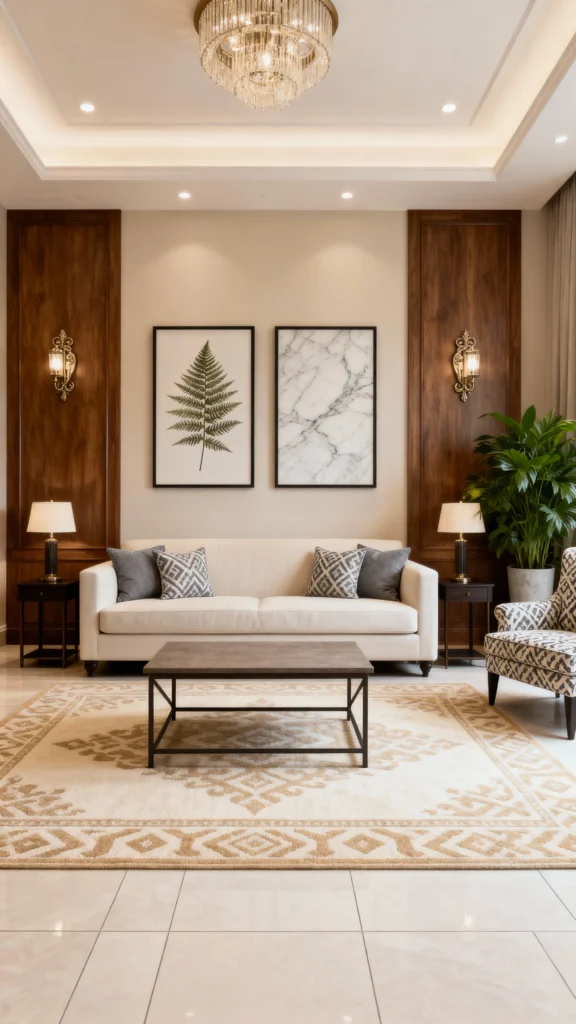 Lighting can completely change the feel of your living room. Use a mix of floor lamps, table lamps, and overhead lighting to create layers and depth. Don’t forget to dim the lights for cozy evenings or brightening them for lively gatherings.