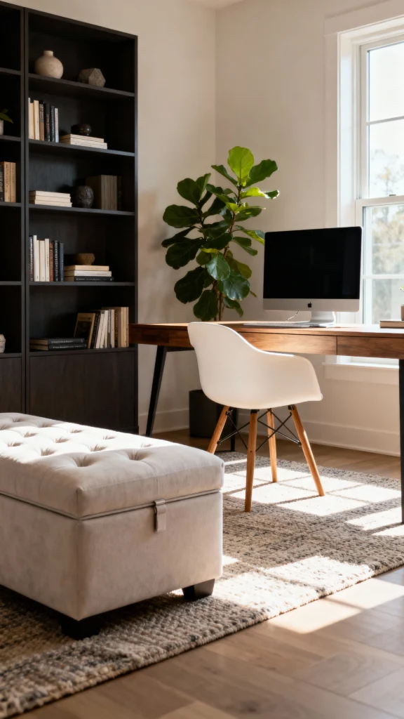 Multi-use ottomans are a smart way to combine style and function in your small space. They can serve as extra seating while also providing hidden storage for office supplies or blankets. Plus, they add a cozy touch to your workspace, making it feel more inviting.
