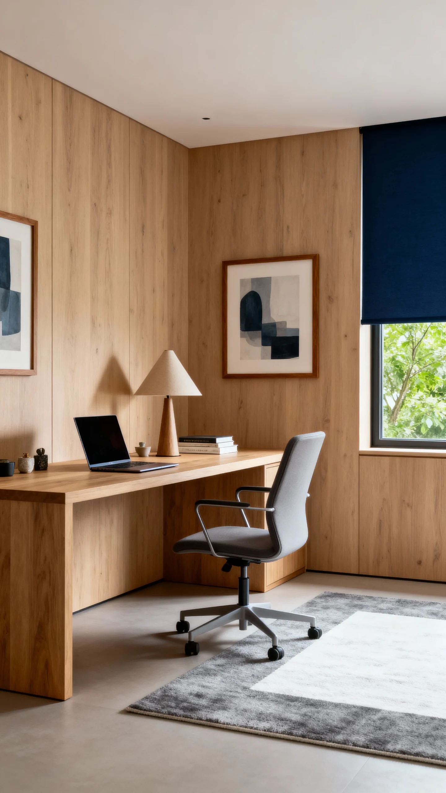 Natural light is essential in a Japandi workspace, creating a bright and inviting atmosphere. Large windows let in sunlight and provide views of the outdoors, making the space feel open and airy. This connection to nature enhances focus and productivity, perfectly blending minimalism with functionality.