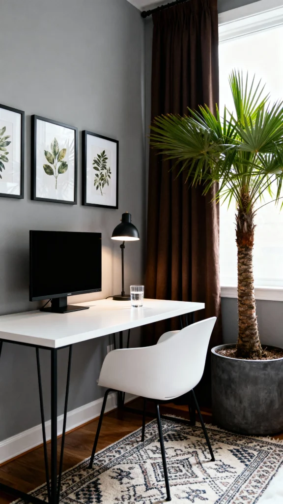 Bringing plants into your home office can really brighten up the space. Choose a few easy-to-care-for varieties like snake plants or pothos to add a touch of nature. Not only do they look good, but they can also help improve air quality, making your workspace feel fresh and inviting.