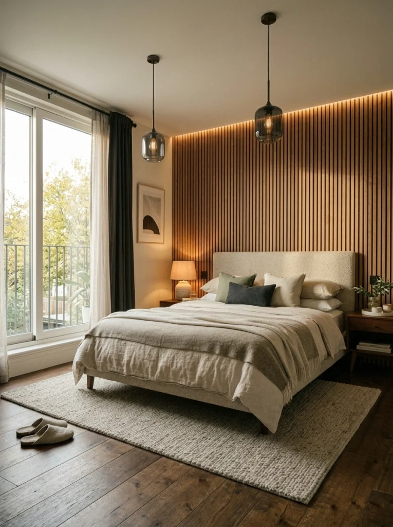 - Small bedroom strategy: Use narrow slats in a light oak finish to keep the room feeling airy.